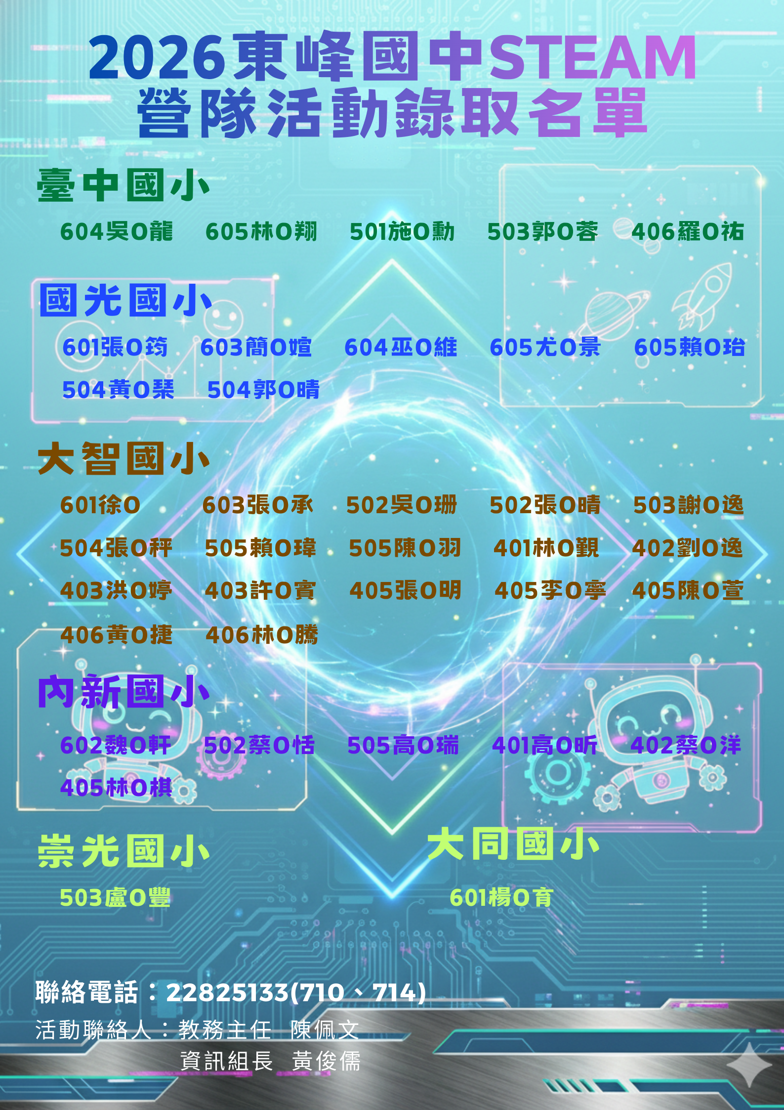 家長參觀日STEAM營隊錄取名單